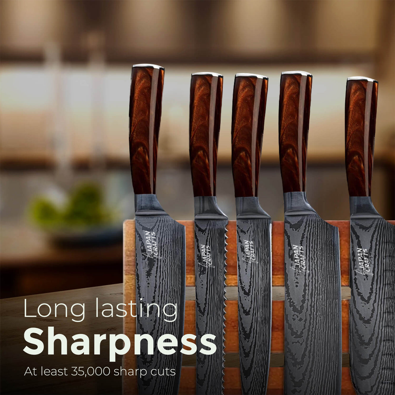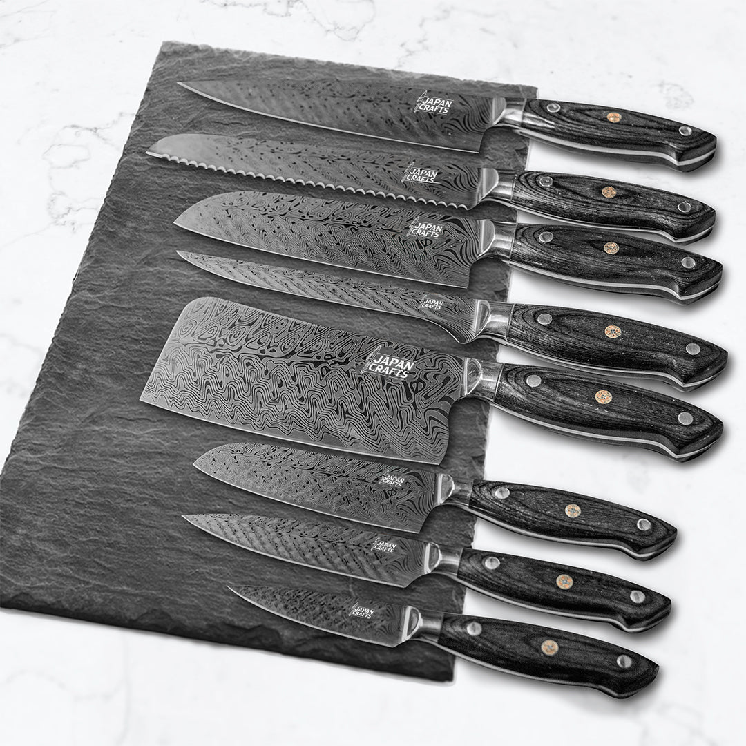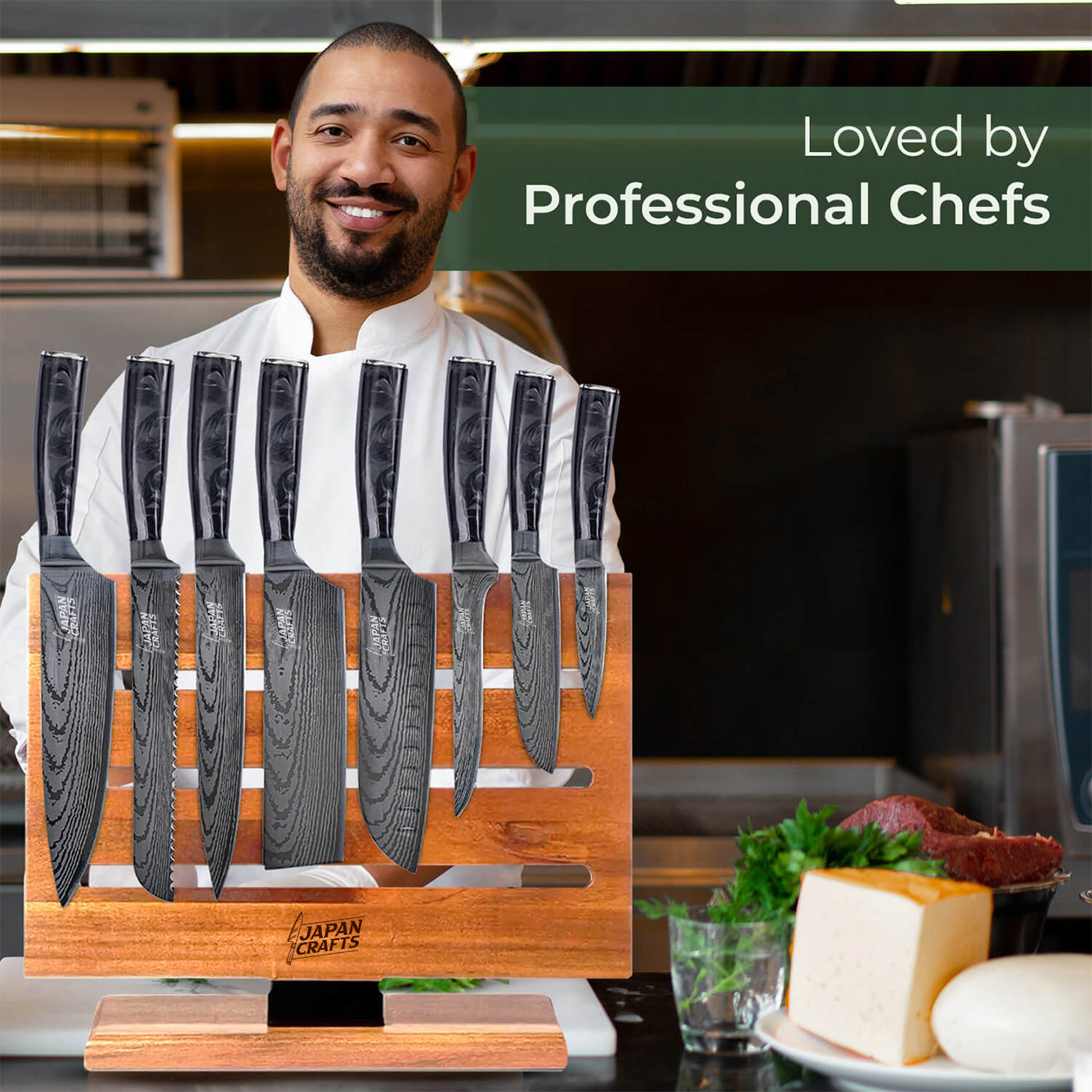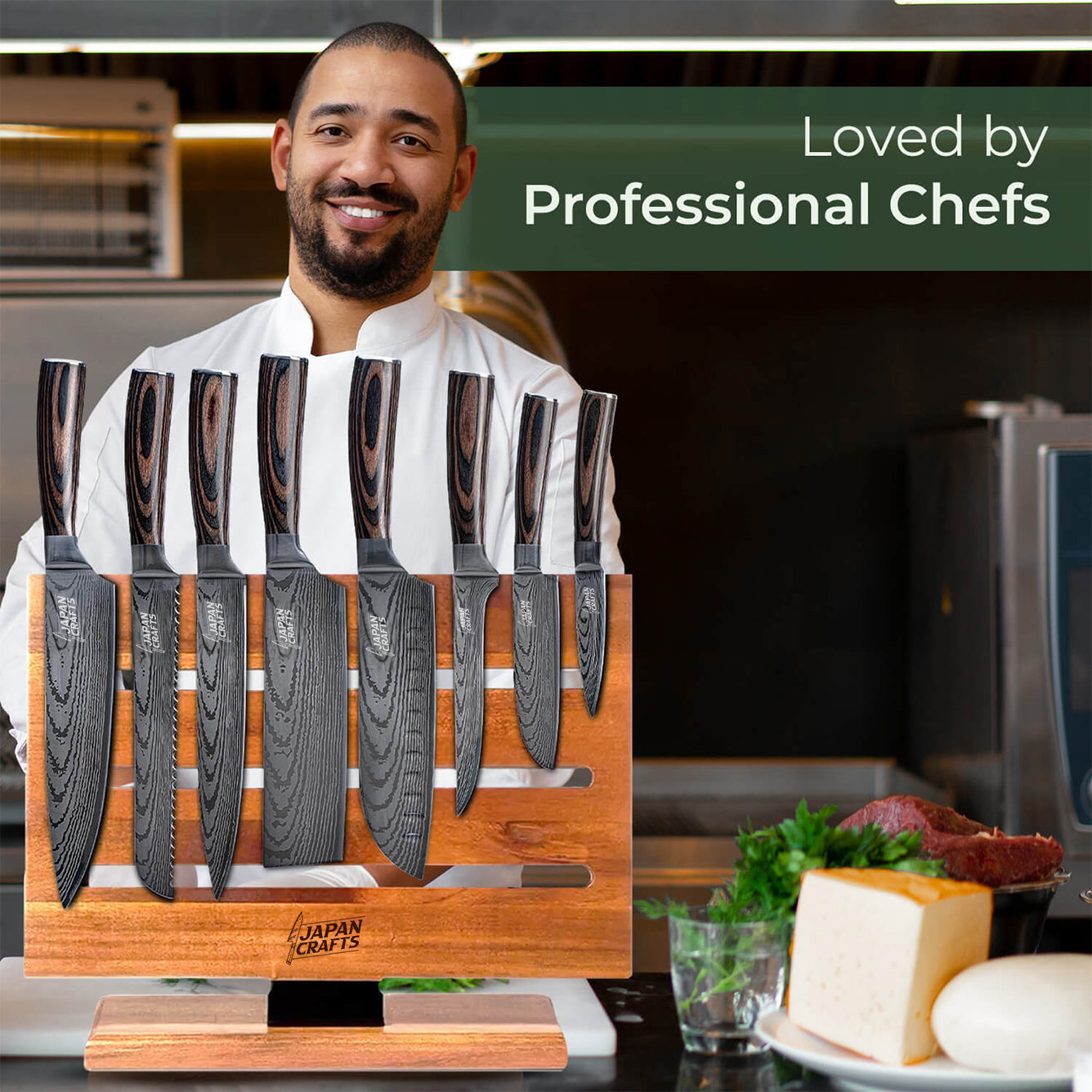 JapanCrafts 8pcs Knifeset og KnifeBlock Pro