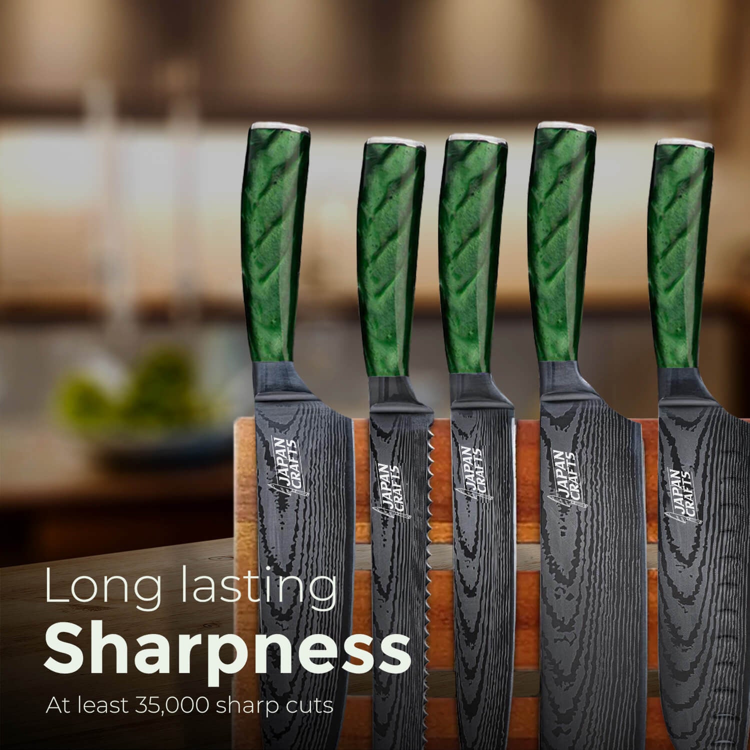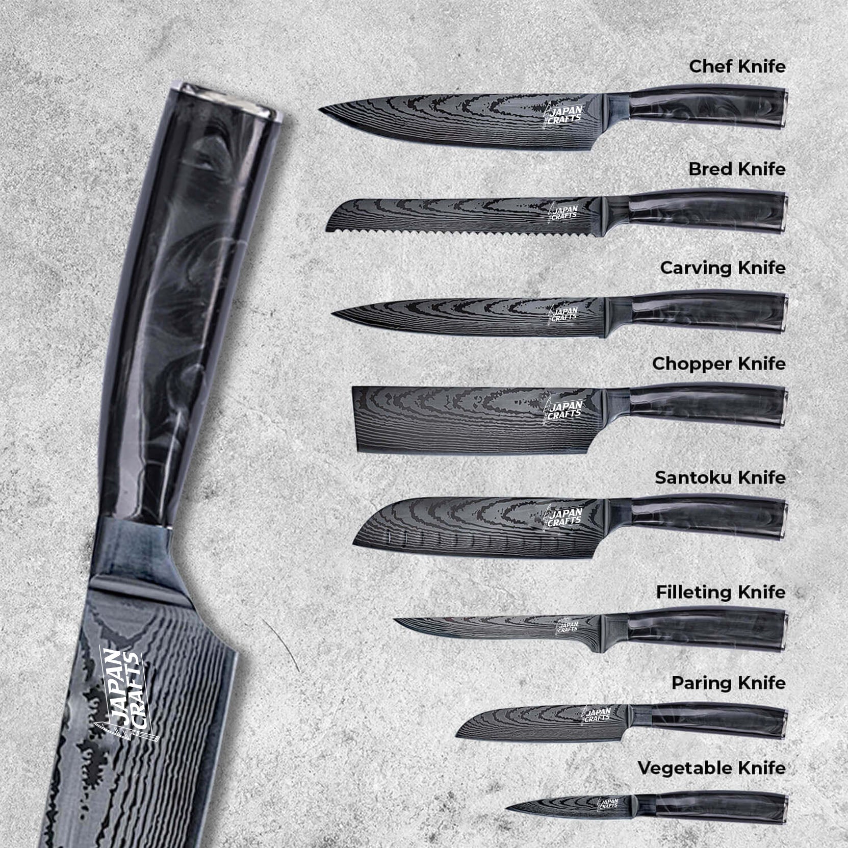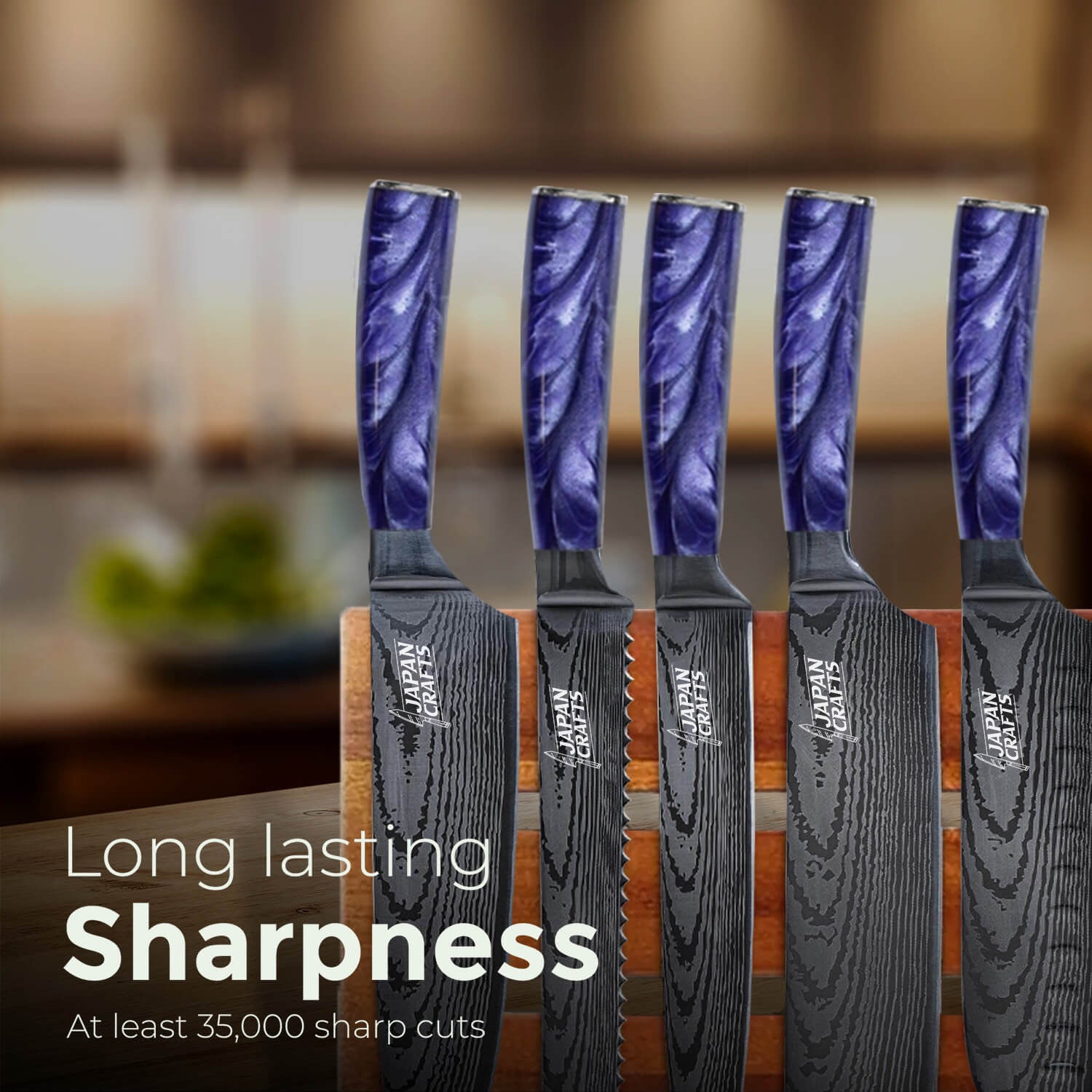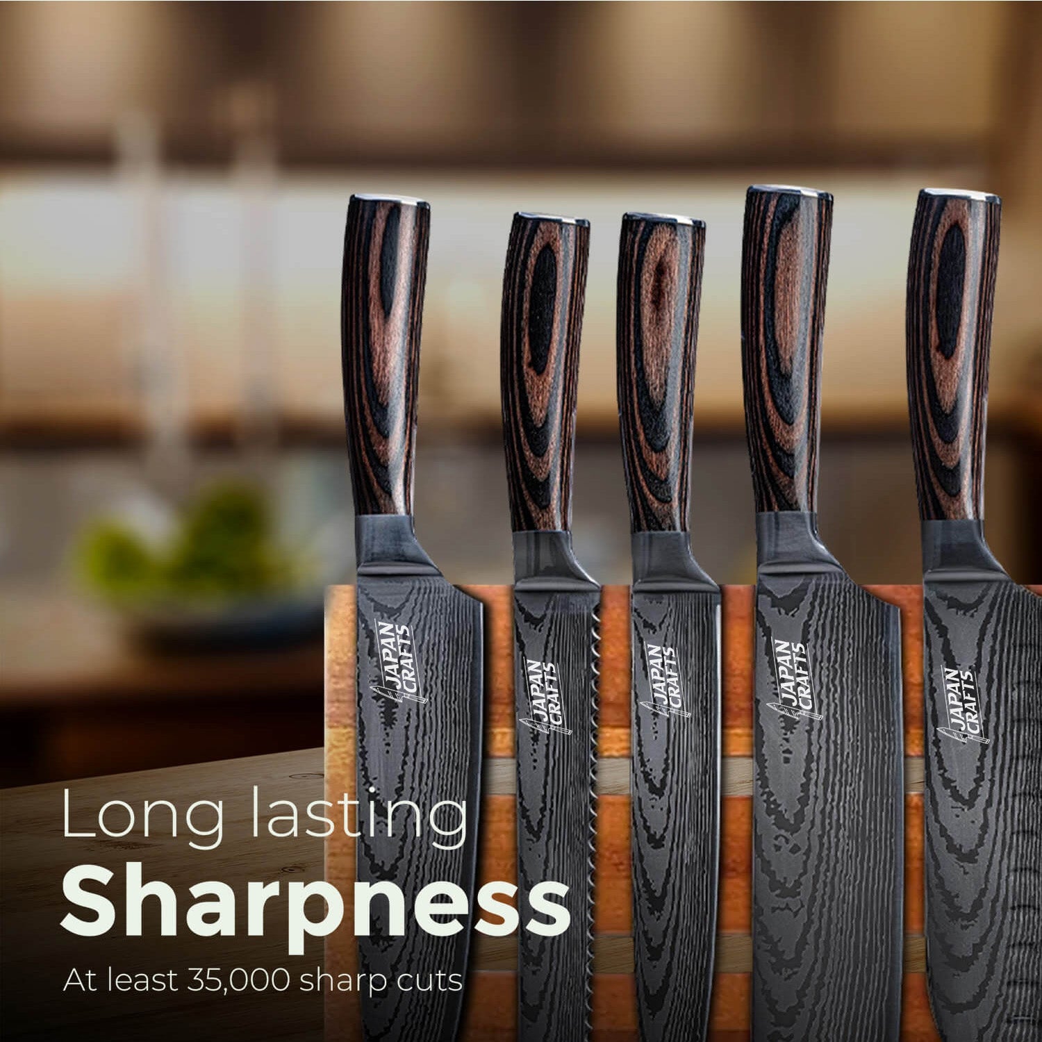 JapanCrafts 8pcs Knifeset og KnifeBlock Pro