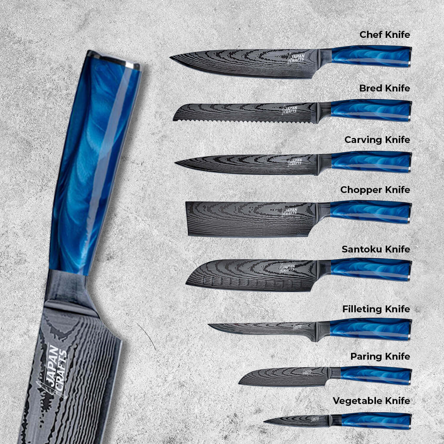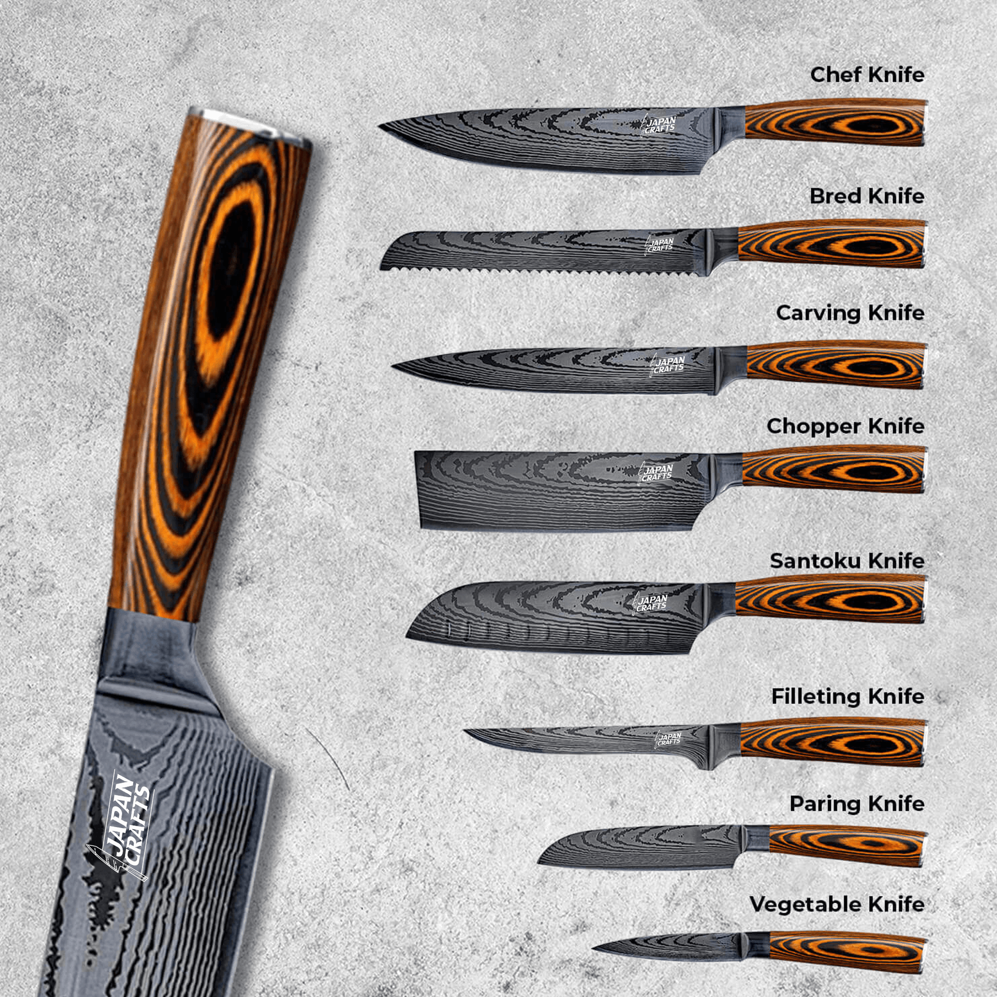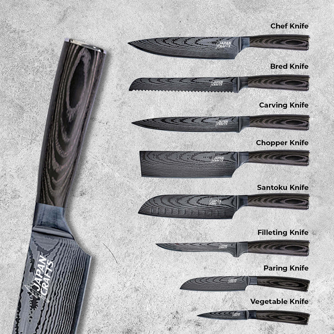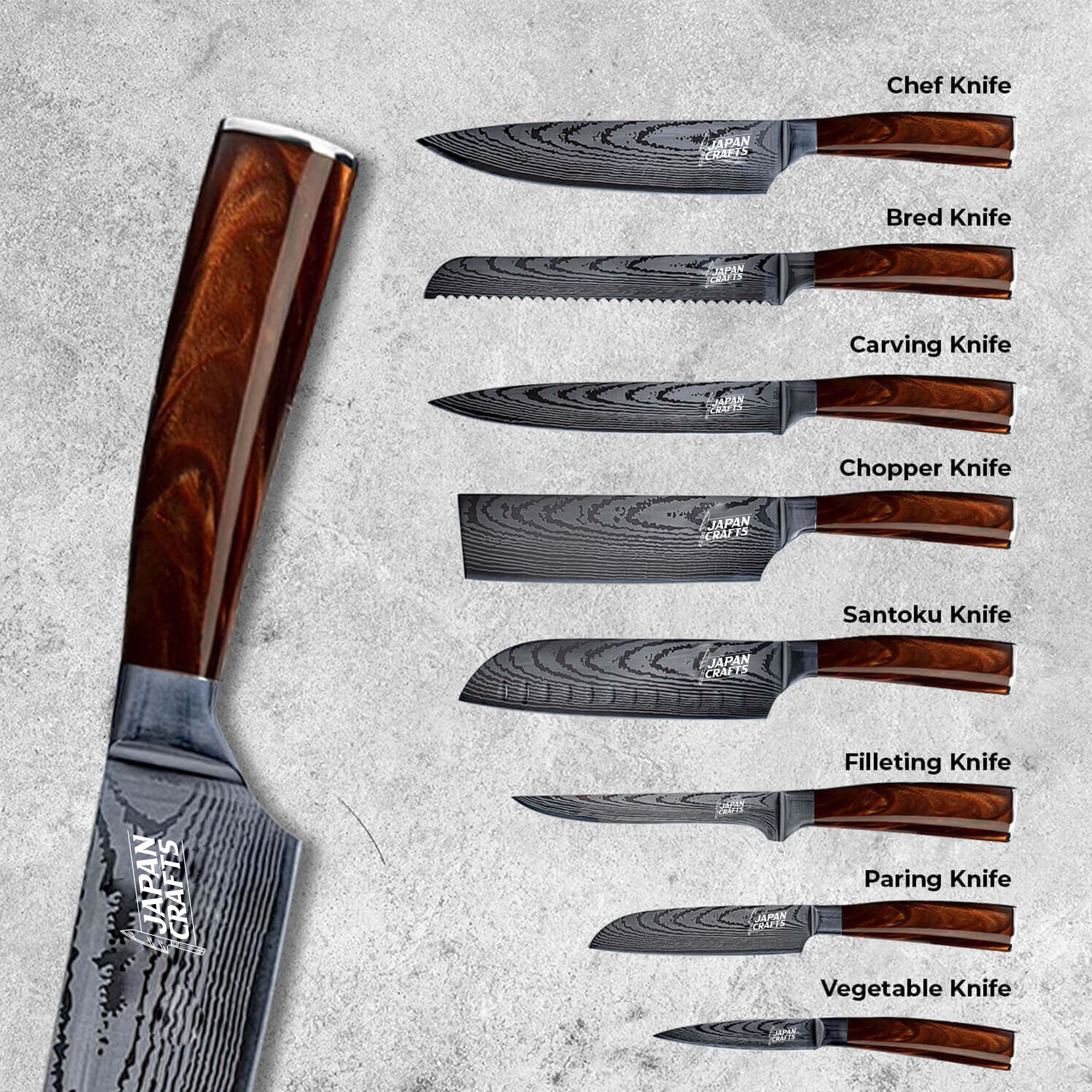 JapanCrafts 8pcs Knifeset og KnifeBlock Pro