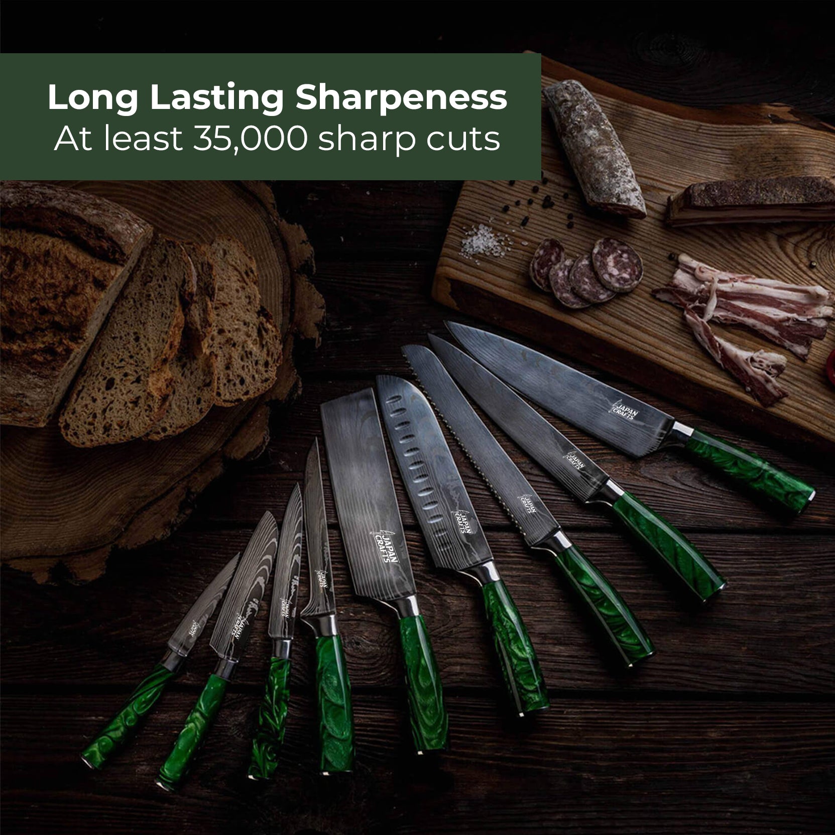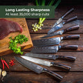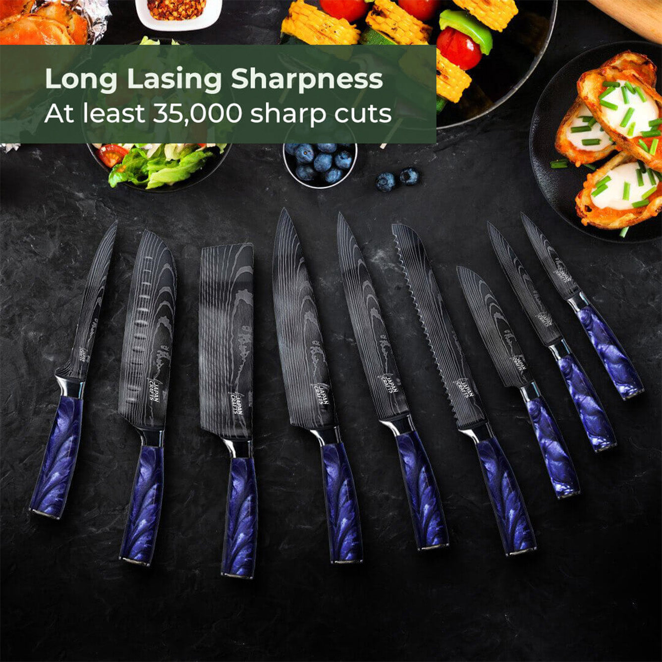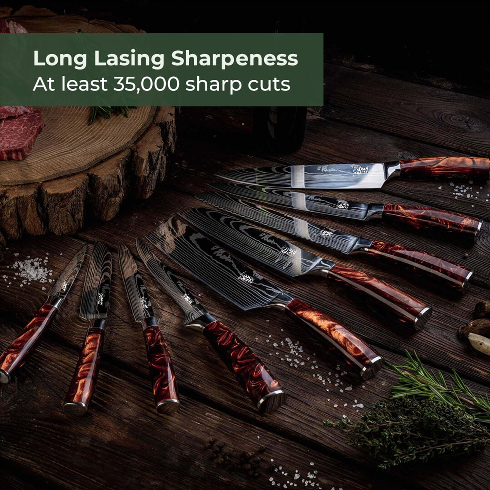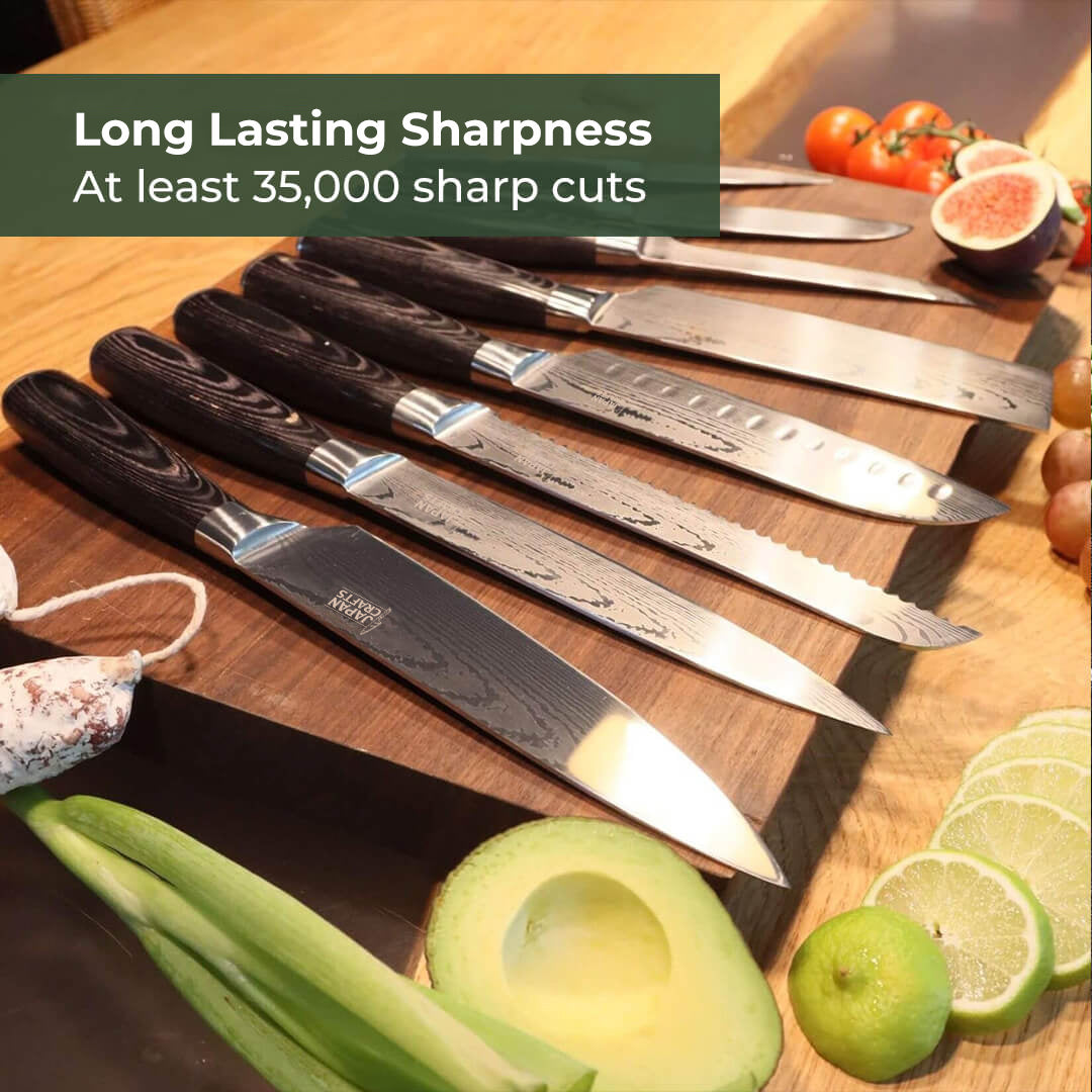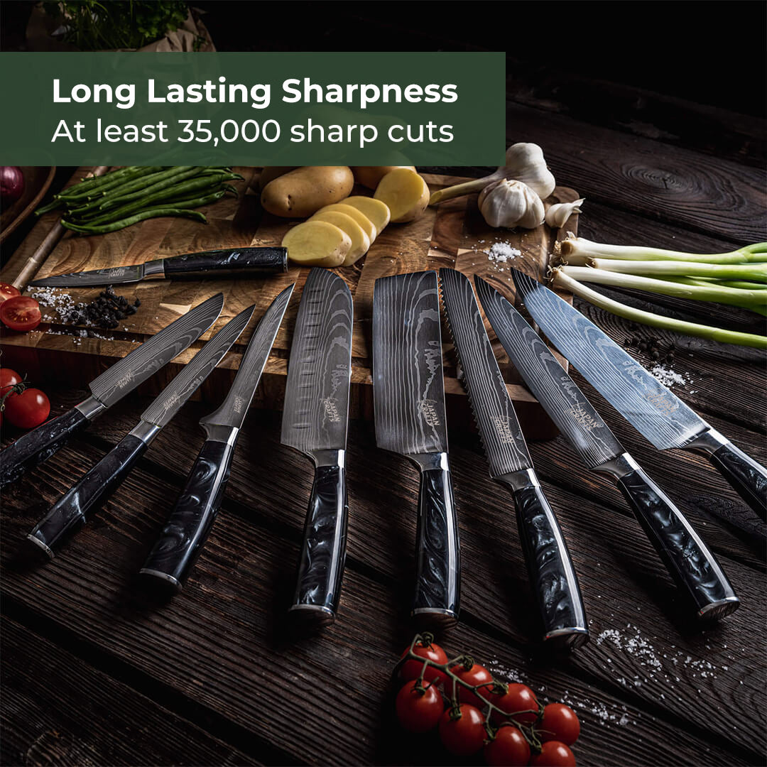 Thanks to the professional and special hardening process, our knives retain their sharpness much longer than conventional kitchen knives.