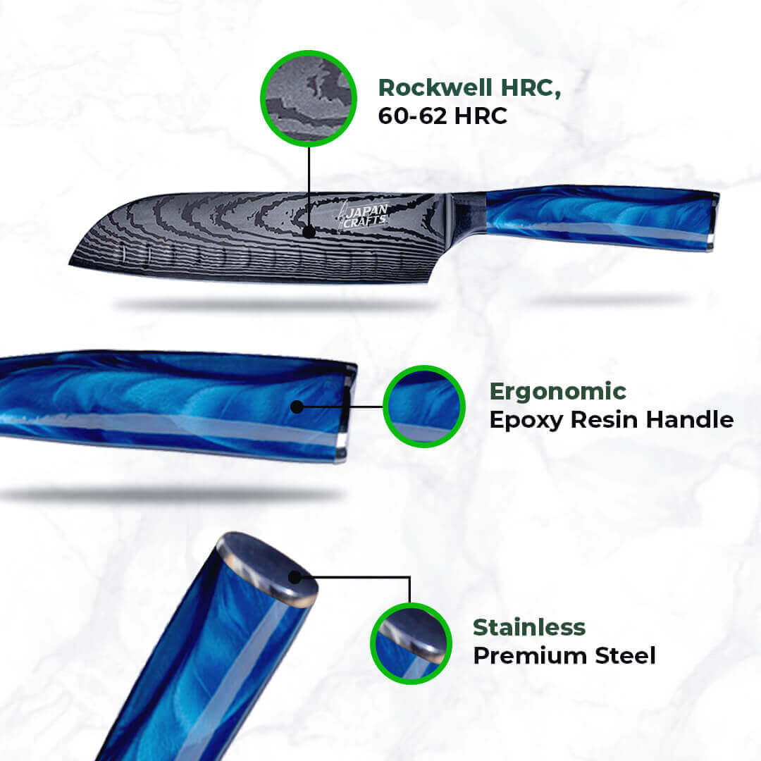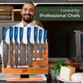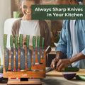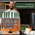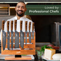 Our exclusive knife set offers exceptional sharpness and handmade quality. The smart choice for your kitchen, without having to keep buying more!